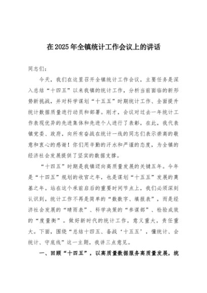 / 【七哥公文】2025年:在2025年全镇统计工作会议上的讲话+更多免费公文+VX:QiGeGongWen2024