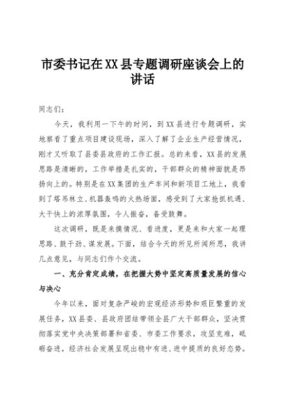 / 【七哥公文】2025年:市委书记在XX县专题调研座谈会上的讲话+更多免费公文+VX:QiGeGongWen2024