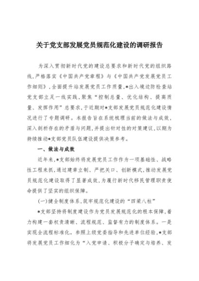 / 【七哥公文】2025年:关于党支部发展党员规范化建设的调研报告+更多免费公文+VX:QiGeGongWen2024