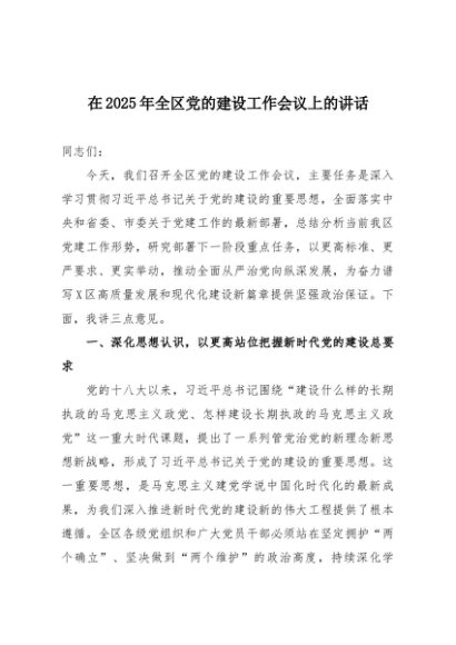 / 【七哥公文】2025年:在2025年全区党的建设工作会议上的讲话+更多免费公文+VX:QiGeGongWen2024