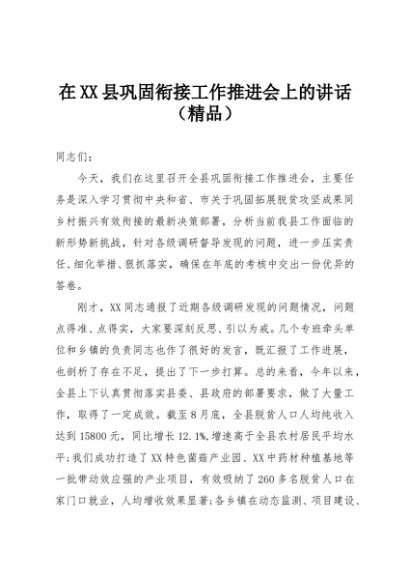 / 【七哥公文】2025年:在XX县巩固衔接工作推进会上的讲话(精品)+更多免费公文+VX:QiGeGongWen2024