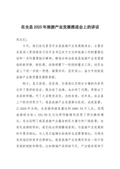 / 【七哥公文】2025年:在全县2025年旅游产业发展推进会上的讲话+更多免费公文+VX:QiGeGongWen2024