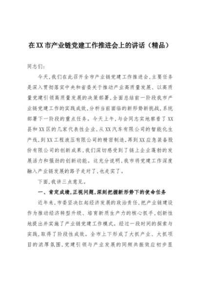 / 【七哥公文】2025年:在XX市产业链党建工作推进会上的讲话(精品)+更多免费公文+VX:QiGeGongWen2024