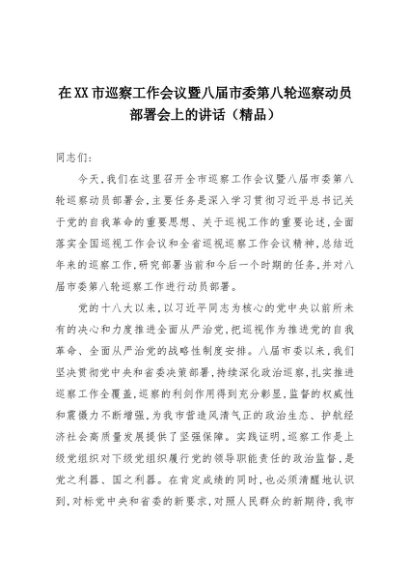 【七哥公文】2025年:在XX市巡察工作会议暨八届市委第八轮巡察动员部署会上的讲话(精品)+更多免费公文+VX:QiGeGongWen2024