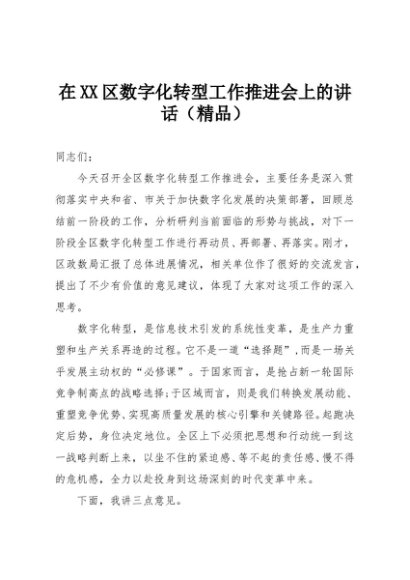 / 【七哥公文】2025年:在XX区数字化转型工作推进会上的讲话(精品)+更多免费公文+VX:QiGeGongWen2024