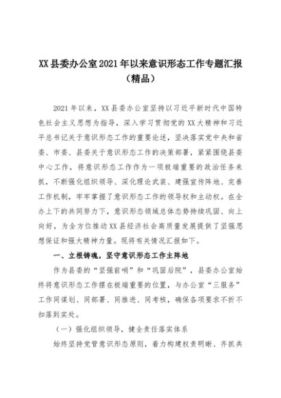 【七哥公文】2025年:XX县委办公室2021年以来意识形态工作专题汇报(精品)+更多免费公文+VX:QiGeGongWen2024