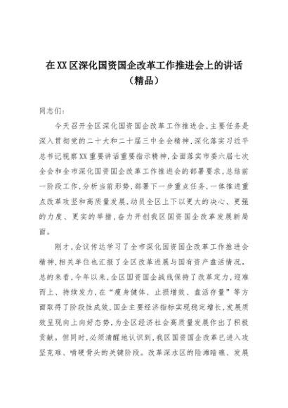 【七哥公文】2025年:在XX区深化国资国企改革工作推进会上的讲话(精品)+更多免费公文+VX:QiGeGongWen2024