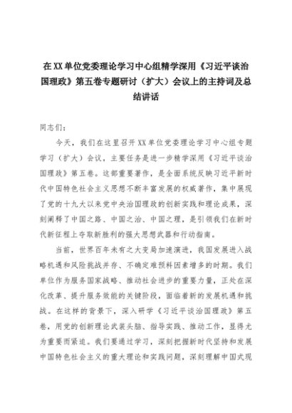 【七哥公文】2025年:在XX单位党委理论学习中心组精学深用《习近平谈治国理政》第五卷专题研讨(扩大)会议上的主持词及总结讲话+更多免费公文+VX:QiGeGongWen2024