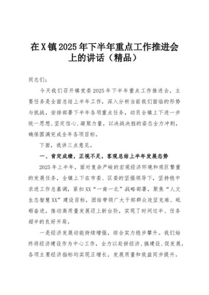 【七哥公文】2025年:在X镇2025年下半年重点工作推进会上的讲话(精品)+更多免费公文+VX:QiGeGongWen2024