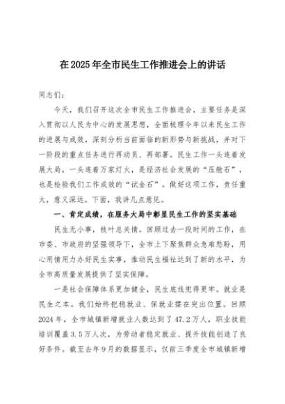 / 【七哥公文】2025年:在2025年全市民生工作推进会上的讲话+更多免费公文+VX:QiGeGongWen2024