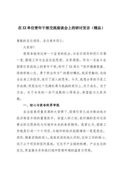 【七哥公文】2025年:在XX单位青年干部交流座谈会上的研讨发言(精品)+更多免费公文+VX:QiGeGongWen2024