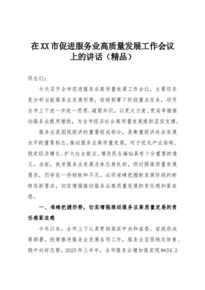 【七哥公文】2025年:在XX市促进服务业高质量发展工作会议上的讲话(精品)+更多免费公文+VX:QiGeGongWen2024