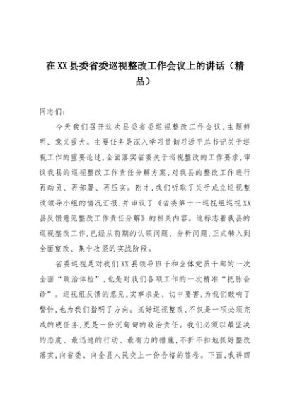 / 【七哥公文】2025年:在XX县委省委巡视整改工作会议上的讲话(精品)+更多免费公文+VX:QiGeGongWen2024