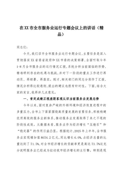 / 【七哥公文】2025年:在XX市全市服务业运行专题会议上的讲话(精品)+更多免费公文+VX:QiGeGongWen2024