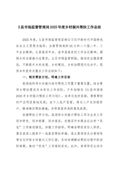 【七哥公文】2025年:X县市场监督管理局2025年度乡村振兴帮扶工作总结+更多免费公文+VX:QiGeGongWen2024