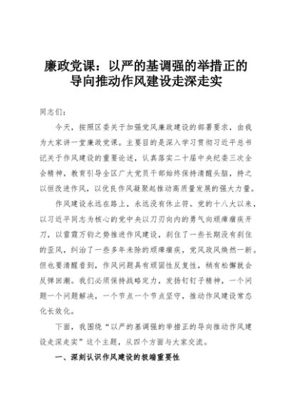 【七哥公文】2025年:廉政党课:以严的基调强的举措正的导向推动作风建设走深走实+更多免费公文+VX:QiGeGongWen2024