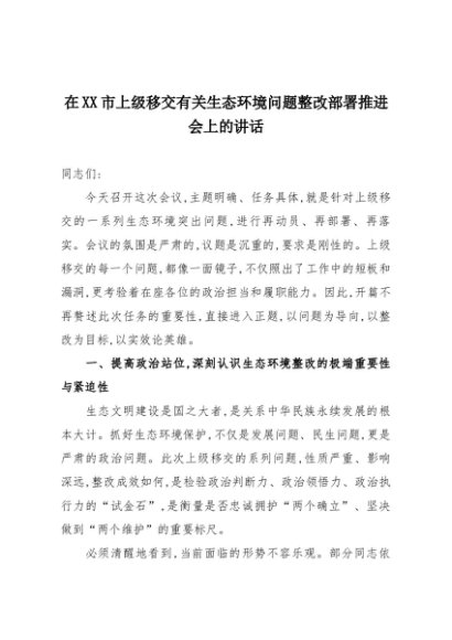 【七哥公文】2025年:在XX市上级移交有关生态环境问题整改部署推进会上的讲话+更多免费公文+VX:QiGeGongWen2024