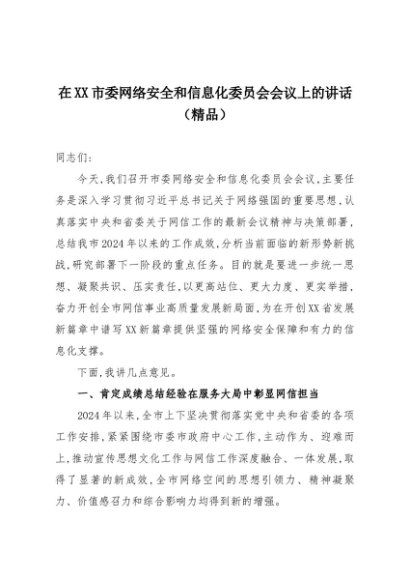 【七哥公文】2025年:在XX市委网络安全和信息化委员会会议上的讲话(精品)+更多免费公文+VX:QiGeGongWen2024