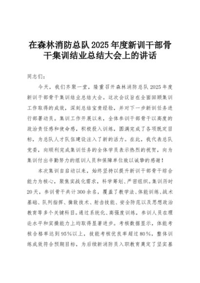【七哥公文】2025年:在森林消防总队2025年度新训干部骨干集训结业总结大会上的讲话+更多免费公文+VX:QiGeGongWen2024