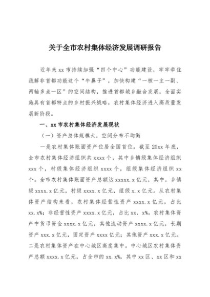 / 【七哥公文】2025年:关于全市农村集体经济发展调研报告+更多免费公文+VX:QiGeGongWen2024