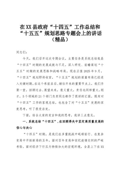 【七哥公文】2025年:在XX县政府“十四五”工作总结和“十五五”规划思路专题会上的讲话(精品)+更多免费公文+VX:QiGeGongWen2024
