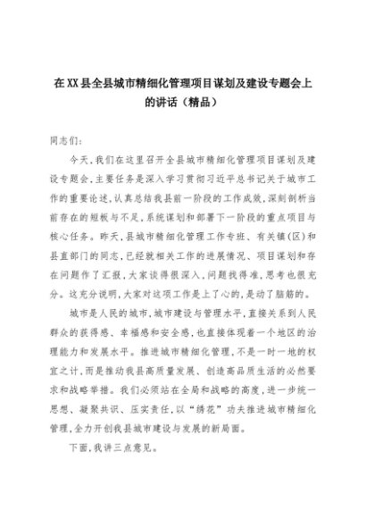 【七哥公文】2025年:在XX县全县城市精细化管理项目谋划及建设专题会上的讲话(精品)+更多免费公文+VX:QiGeGongWen2024