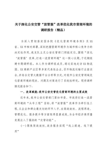 【七哥公文】2025年:关于深化公安交管“放管服”改革优化我市营商环境的调研报告(精品)+更多免费公文+VX:QiGeGongWen2024
