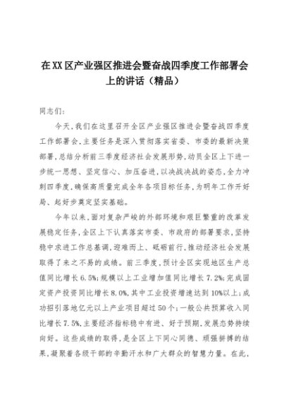 【七哥公文】2025年:在XX区产业强区推进会暨奋战四季度工作部署会上的讲话(精品)+更多免费公文+VX:QiGeGongWen2024