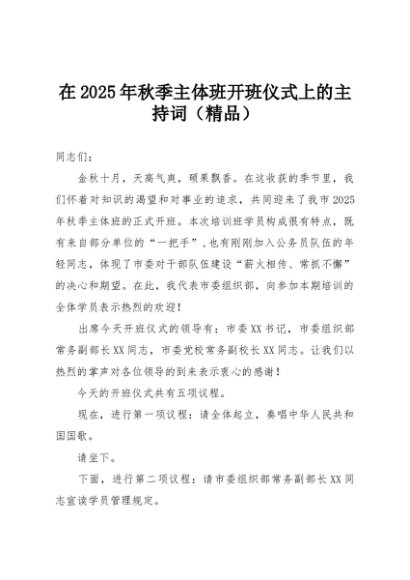 / 【七哥公文】2025年:在2025年秋季主体班开班仪式上的主持词(精品)+更多免费公文+VX:QiGeGongWen2024