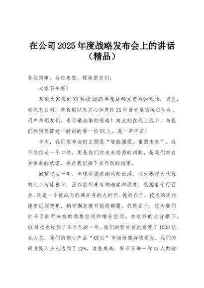 / 【七哥公文】2025年:在公司2025年度战略发布会上的讲话(精品)+更多免费公文+VX:QiGeGongWen2024