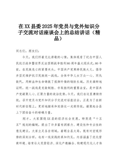 【七哥公文】2025年:在XX县委2025年党员与党外知识分子交流对话座谈会上的总结讲话(精品)+更多免费公文+VX:QiGeGongWen2024