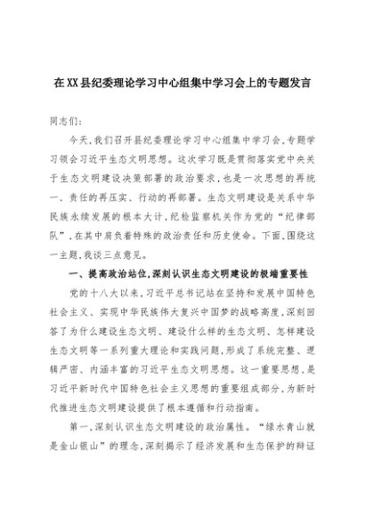 / 【七哥公文】2025年:在XX县纪委理论学习中心组集中学习会上的专题发言+更多免费公文+VX:QiGeGongWen2024