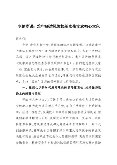 / 【七哥公文】2025年:专题党课:筑牢廉洁思想根基永葆支农初心本色+更多免费公文+VX:QiGeGongWen2024