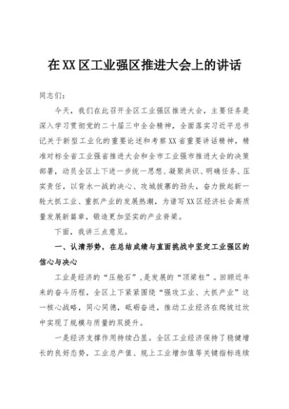 / 【七哥公文】2025年:在XX区工业强区推进大会上的讲话+更多免费公文+VX:QiGeGongWen2024