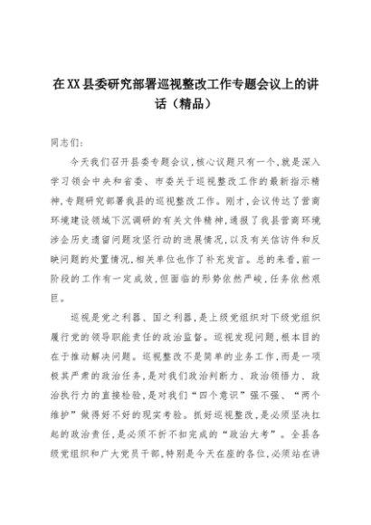 【七哥公文】2025年:在XX县委研究部署巡视整改工作专题会议上的讲话(精品)+更多免费公文+VX:QiGeGongWen2024