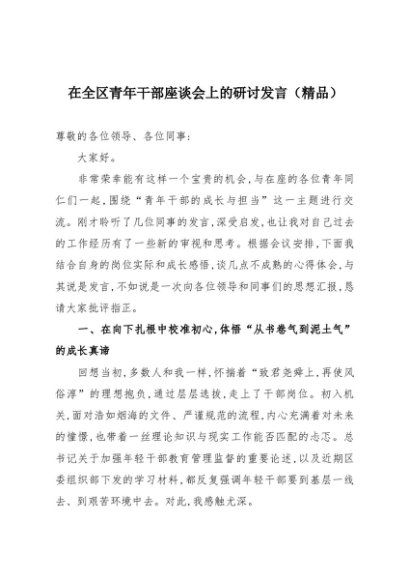 / 【七哥公文】2025年:在全区青年干部座谈会上的研讨发言(精品)+更多免费公文+VX:QiGeGongWen2024