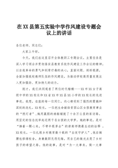 / 【七哥公文】2025年:在XX县第五实验中学作风建设专题会议上的讲话+更多免费公文+VX:QiGeGongWen2024