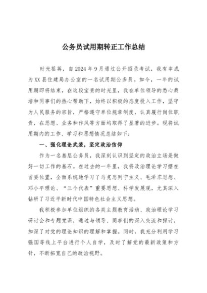 / 【七哥公文】2025年:公务员试用期转正工作总结+更多免费公文+VX:QiGeGongWen2024