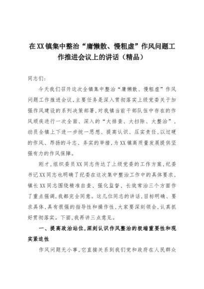 【七哥公文】2025年:在XX镇集中整治“庸懒散、慢粗虚”作风问题工作推进会议上的讲话(精品)+更多免费公文+VX:QiGeGongWen2024