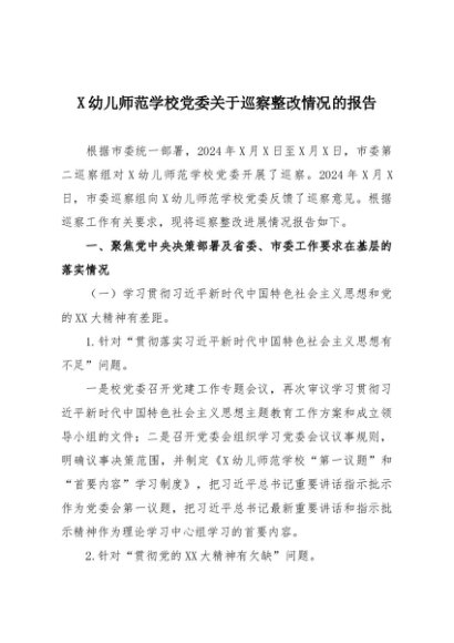 / 【七哥公文】2025年:X幼儿师范学校党委关于巡察整改情况的报告+更多免费公文+VX:QiGeGongWen2024