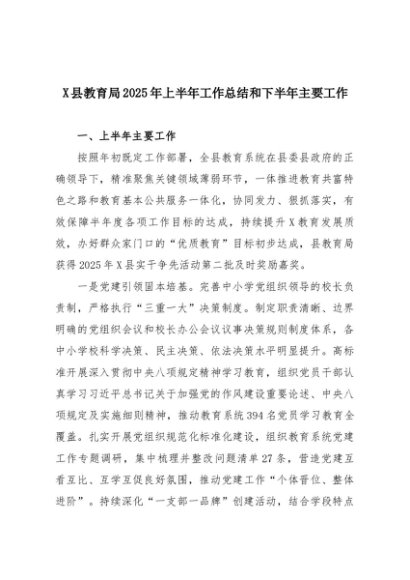【七哥公文】2025年:X县教育局2025年上半年工作总结和下半年主要工作+更多免费公文+VX:QiGeGongWen2024