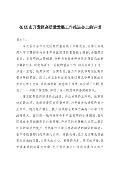 / 【七哥公文】2025年:在XX市开发区高质量发展工作推进会上的讲话+更多免费公文+VX:QiGeGongWen2024