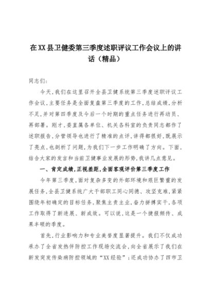 【七哥公文】2025年:在XX县卫健委第三季度述职评议工作会议上的讲话(精品)+更多免费公文+VX:QiGeGongWen2024