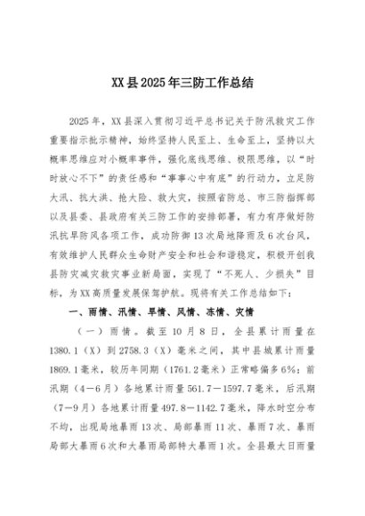 / 【七哥公文】2025年:XX县2025年三防工作总结+更多免费公文+VX:QiGeGongWen2024