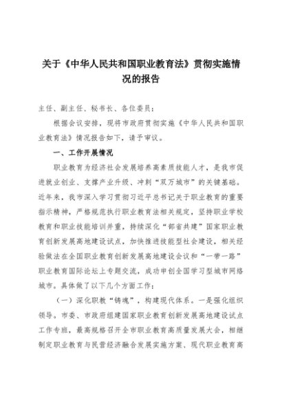【七哥公文】2025年:关于《中华人民共和国职业教育法》贯彻实施情况的报告+更多免费公文+VX:QiGeGongWen2024