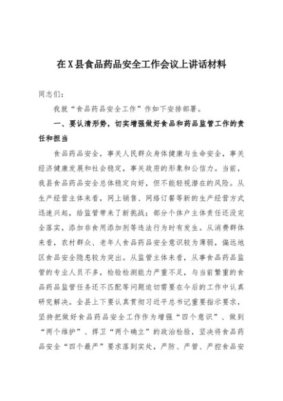 / 【七哥公文】2025年:在X县食品药品安全工作会议上讲话材料+更多免费公文+VX:QiGeGongWen2024