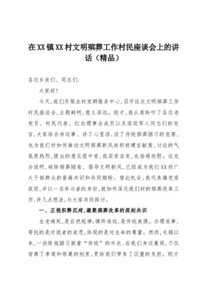 【七哥公文】2025年:在XX镇XX村文明殡葬工作村民座谈会上的讲话(精品)+更多免费公文+VX:QiGeGongWen2024