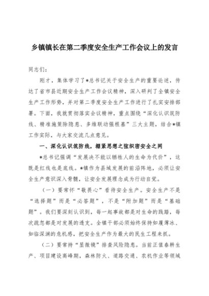 / 【七哥公文】2025年:乡镇镇长在第二季度安全生产工作会议上的发言+更多免费公文+VX:QiGeGongWen2024