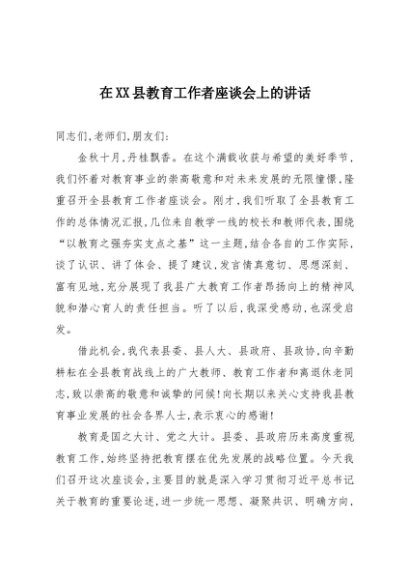 / 【七哥公文】2025年:在XX县教育工作者座谈会上的讲话+更多免费公文+VX:QiGeGongWen2024