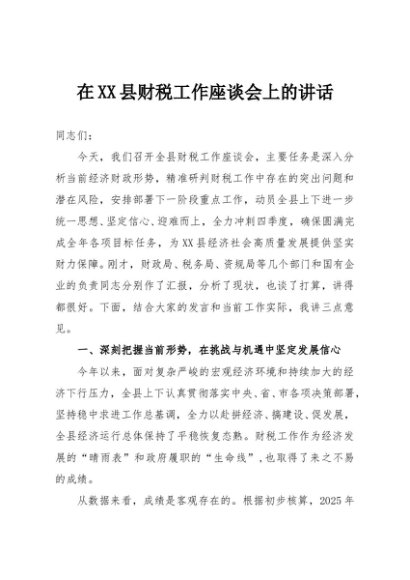 / 【七哥公文】2025年:在XX县财税工作座谈会上的讲话+更多免费公文+VX:QiGeGongWen2024